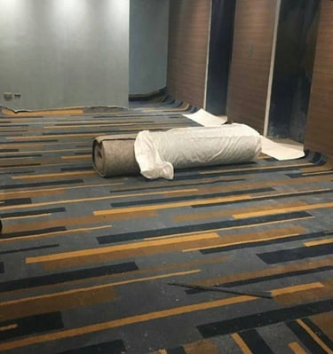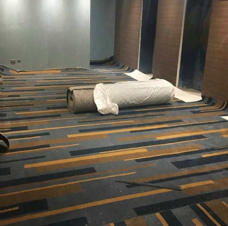 Our team transformed this unfinished commercial space with a full carpet installation, providing a modern and professional finish.